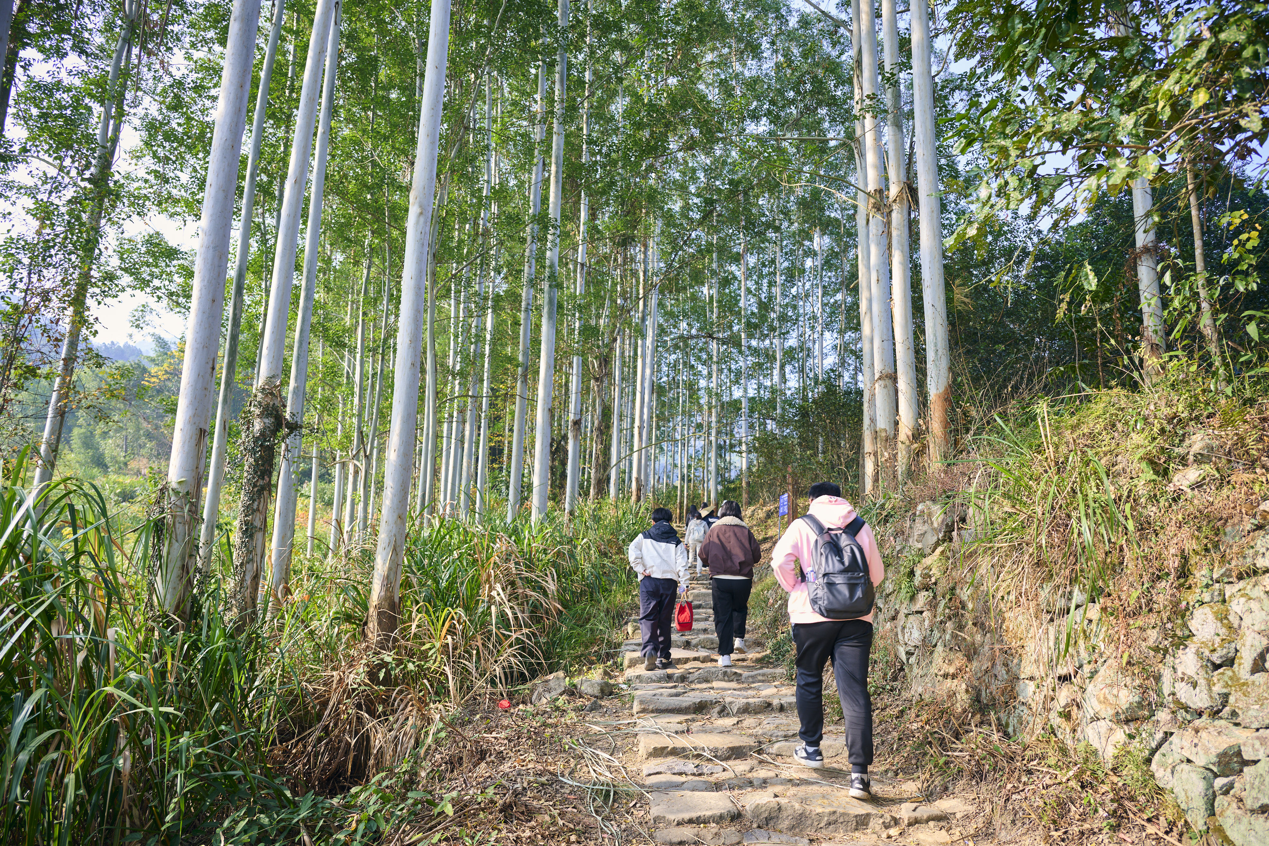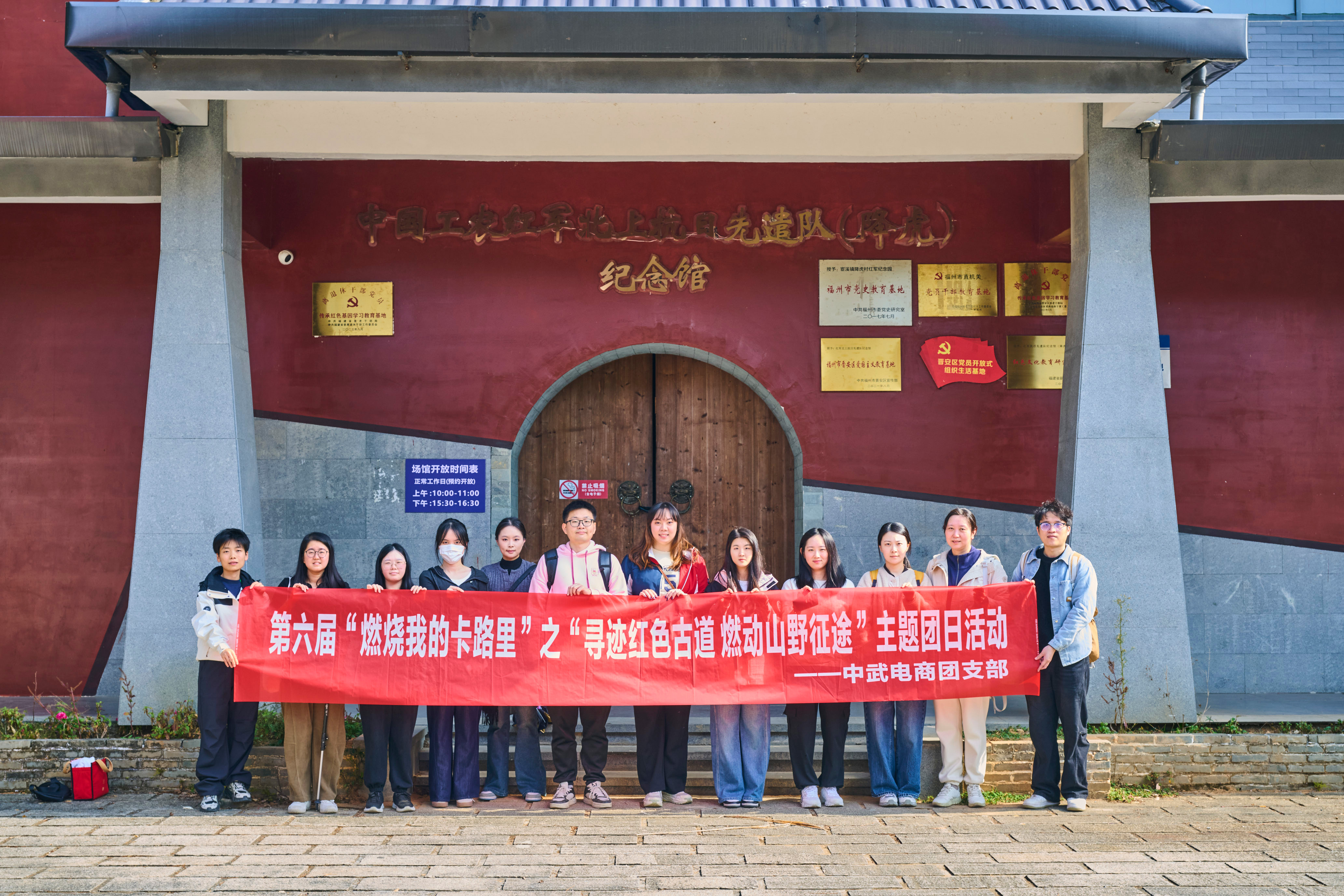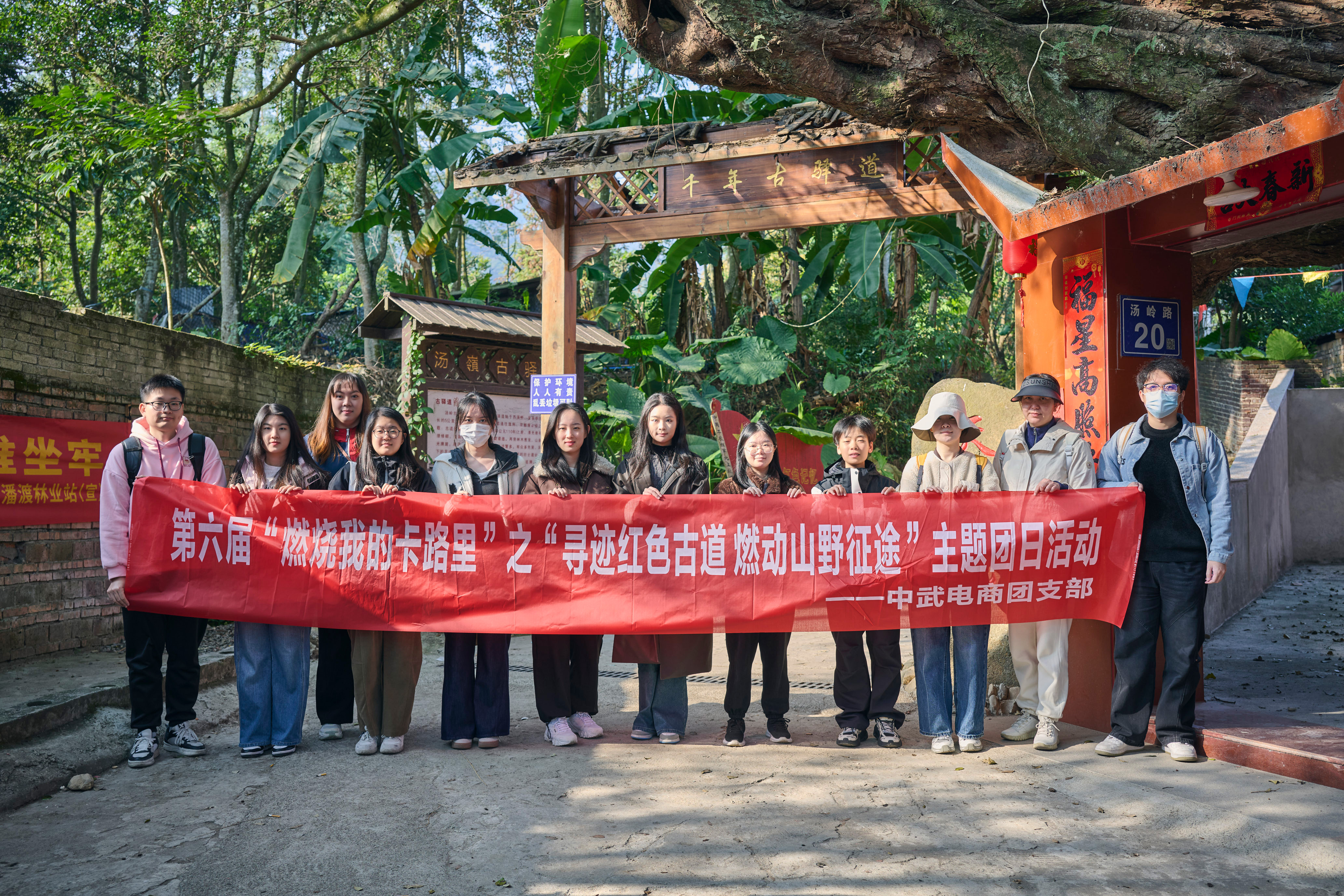 汤岭古道作为福州连通闽东的历史要道,更是承载革命记忆的红色地标——1934年,红军北上抗日先遣队沿此实施战略转移。青年队伍循着青石古道稳步前行,沿途探访抗战遗址。三小时的徒步历程,让大家沉浸式体悟到行军作战的艰辛与坚韧,红色印记在脚下延伸,革命精神在心中传承。